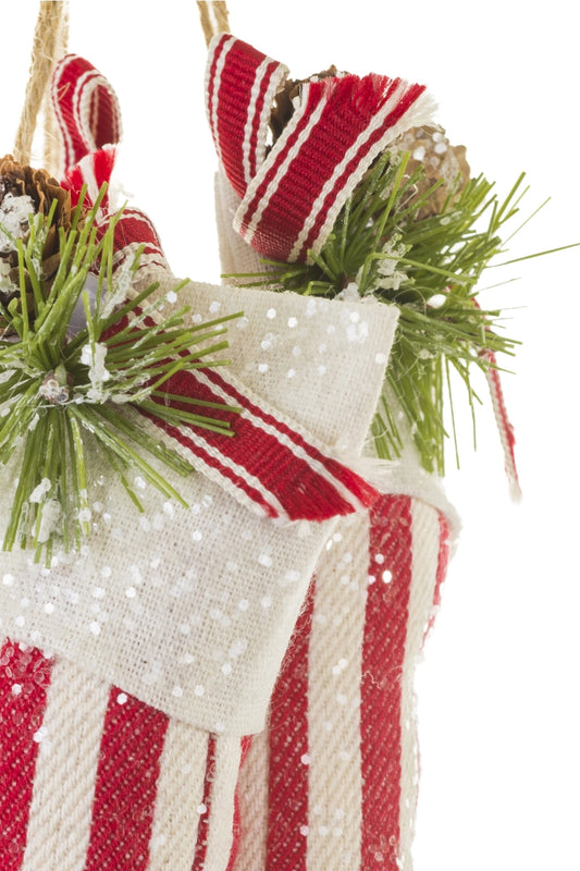 Glittery Striped Red & White Fabric Christmas Stockings Decoration with Pinecones Set of 3 - 2026 SEPTEMBER ARRIVAL