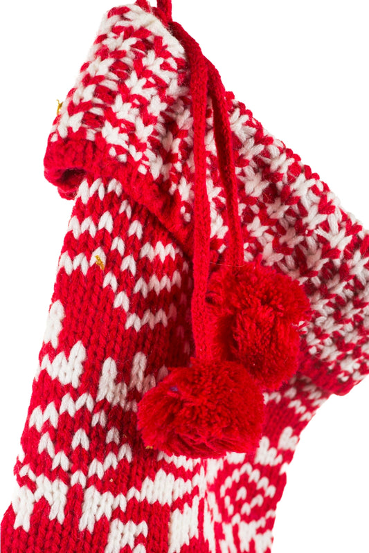 Red Knitted Stocking With Pom Poms - 2026 SEPTEMBER ARRIVAL