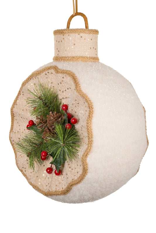 Hanging Fabric White & Cream Reflector Style Bauble Decoration - 2026 SEPTEMBER ARRIVAL