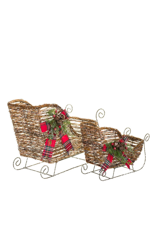 Brown Rattan Sleigh with Plaid Bow Set of 2 - 2026 SEPTEMBER ARRIVAL