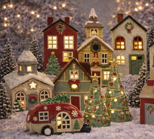 PRE ORDER - Red Pottery Christmas Village Tea Light House - 2026 SEPTEMBER ARRIVAL