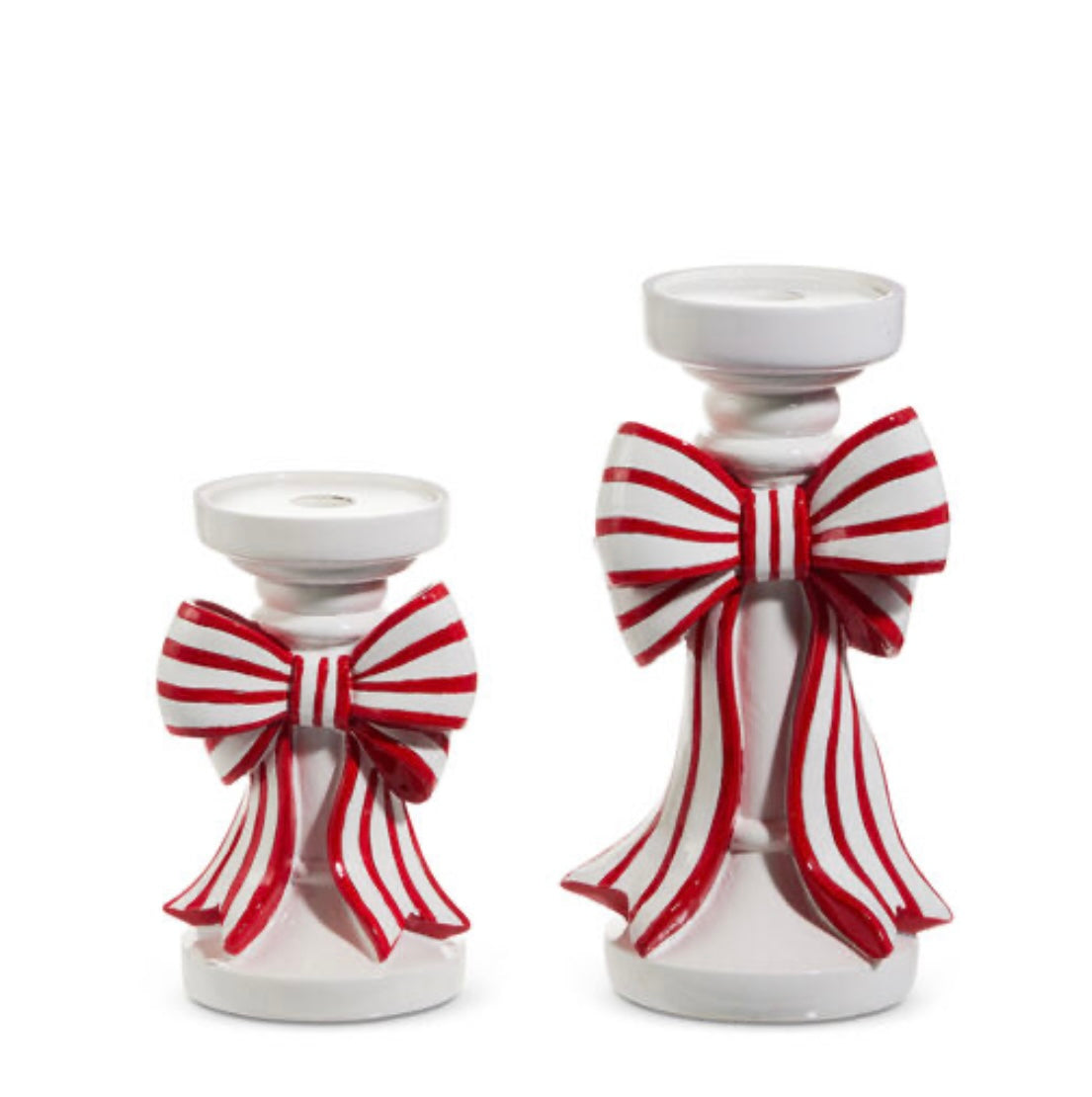 Make It Merry Red And White Stripe Bow Candle Holders Set of 2